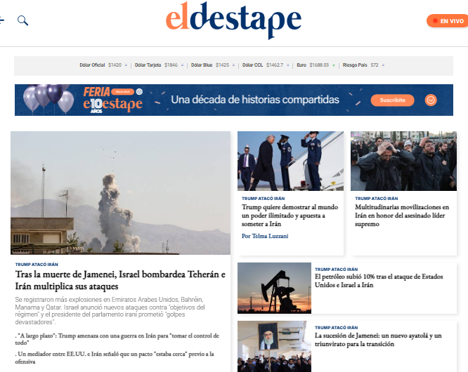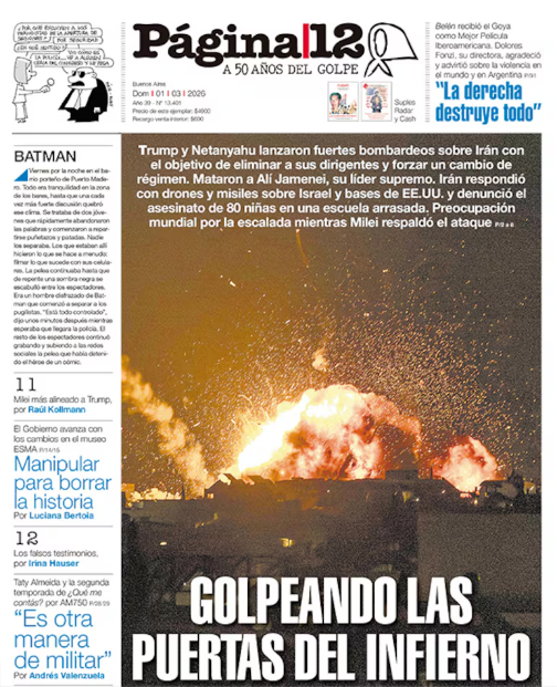 El domingo primero de marzo por la mañana, a 24 horas del comienzo del ataque militar que Estados Unidos e Israel lanzaron contra Irán, se verificó en la mayoría de los medios de Buenos Aires una gran supremacía del relato de Washington sobre las motivaciones, las características y las consecuencias de la acción.