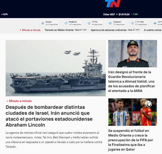 Especialmente llamativa fue, en algunos medios, la ubicación muy visible dada a la posibilidad de que se suspenda en Qatar un partido de fútbol entre las selecciones de España y Argentina, llamada “finalísima”. Este título apareció en ciertos casos como la tercera noticia en importancia.